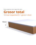 - Ten en cuenta que el grosor de la viscoelástica se suma al grosor total de la espuma (Ejemplo: si eliges una espuma de 10cm de grosor y añades una capa de viscoelástica de 5cm, el grosor total será de 15cm)