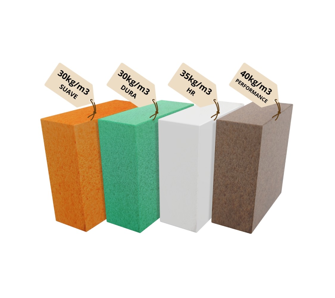 4️⃣ Performance 40 kg/m³ – La espuma más robusta del kit, con un soporte firme ideal para uso intensivo o profesional.