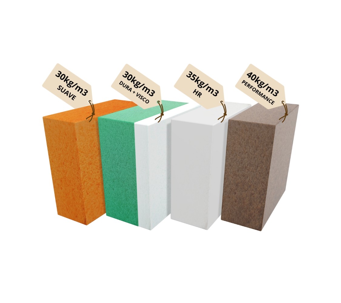 4️⃣ Performance 40 kg/m³ – La espuma más robusta del kit, con un soporte firme ideal para uso intensivo o profesional.